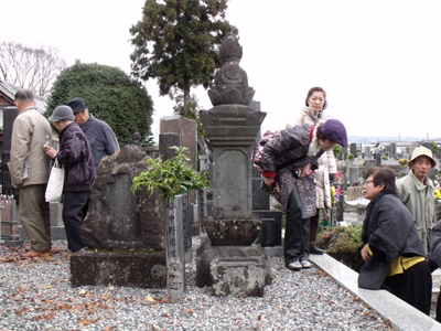 宝篋印塔(供養塔)を見学する参加者。富士山本宮浅間大社