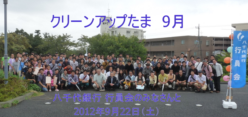 | クリーンアップの成果のゴミ袋がこんなにたくさん! 達成感で笑顔がさわやか! 多摩川の小鳥達も喜んでいます。 子供さんたちもお手伝い有難う。 八千代銀行から10名のお子さんを含め150名もの方々が 参加され、クリーンアップにさわやかな汗を流しました。 短時間に河川敷が見違えるほど美しくなりました。 |