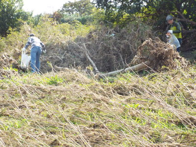 | 中日本ハイウェイ・パトロール東京(株)の皆さんが、二ヶ領せせらぎ館周辺の多摩川河川敷の清掃に汗を流してくれました。 |
