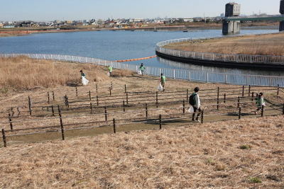 | 常日頃から参加の会員及びご近所の方々と初めて参加の女性グループも加わり、二ヶ領せせらぎ館周辺と多摩川河川敷のクリーンアップを行いました。たくさんのゴミを拾いました。 |