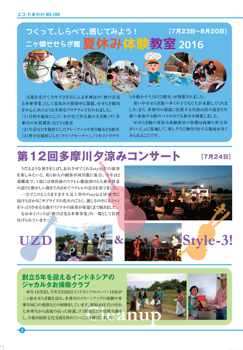エコ・たまがわ No.109 ≪第9回エコ★カップいかだ下り、二ヶ領せせらぎ館 夏休み体験教室≫