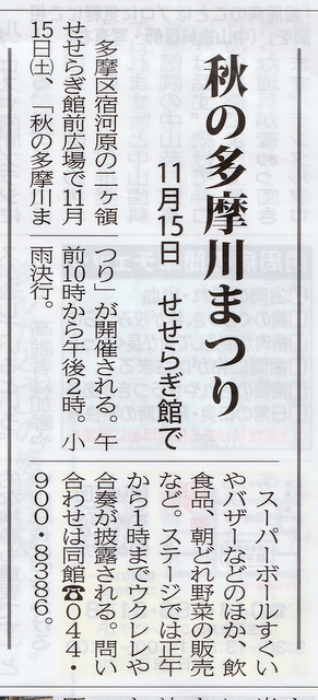 | 2025年11月7日 | 秋の多摩川まつり (タウンニュース 多摩区・麻生区版) |