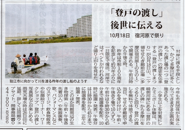 | 2025年10月17日 | 登戸の渡し-後世に伝える (タウンニュース 多摩区・麻生区版) |