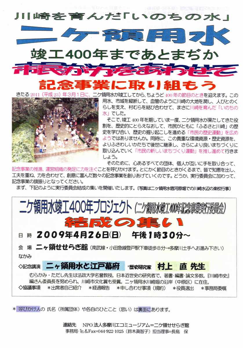 主催:NPO法人多摩川エコミュージアム(二ヶ領用水400年実行委員会)