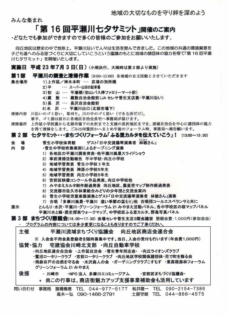 内容:平瀬川の調査と清掃、まちづくりフォーラム、まちづくり懇親会