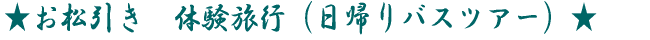 | 申込・問合せ先 | 潟Xペース・プラン登戸支店『お松引き体験 日帰りツアー係』 FAX 044−933−0109 TEL 044-933-0080 |