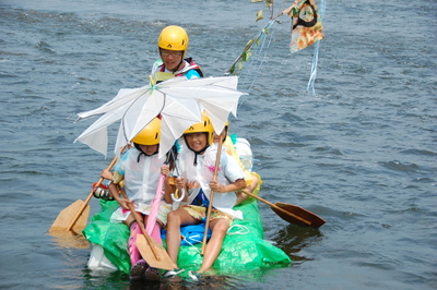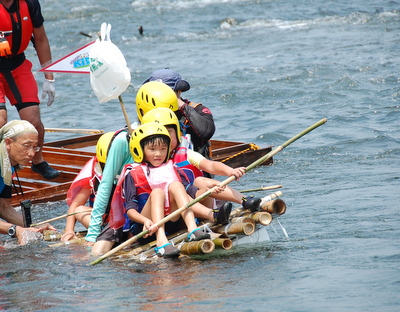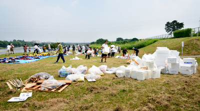 | 先日来の台風の影響が心配された多摩川の本コースですが、水嵩・水量とも程良く、 いかだ下りの乗船者はもちろんのこと、応援者にも恵まれた天候となりました。 今年、各チーム共に例年に増して廃材活用、軽量化に努めたためかスタート直後 沈みかける艇も見られましたが、さすが工夫を凝らしているのか最後まで21の全艇が ゴールしました。 一昨年から実施したいかだの解体とごみ分別は、いかだ下りを終え疲れているのに 関わらず解体作業を選手や応援者の協力の得て時間通りに解体しました。 ごみの分別も完了し、翌日、多摩生活環境事業所のごみ回収車に引き渡しました。 |