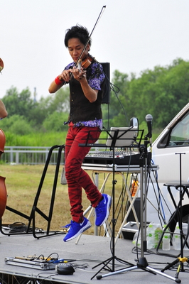 | ♪♪ コントラバス 長澤伴彦さん、バイオリン 高嶋英輔さん、キーボード にしのえみさんのみなさんです ♪♪ | ||