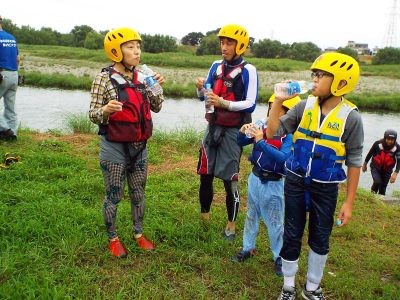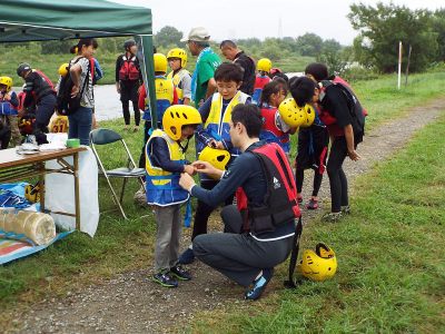 | ライフジャケットを着けて、川下りを 行いました。川の流れに身を任す体 験をして、多摩川を楽しみました。 |