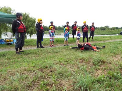 | 救護を担当された「川崎体育救護クラブ」の皆さん、「レスキュー3ジャパン」の高度な安全講習を受講した方々が、“河童の川流れ”を見守り、安全に無事に終えることが出来ました。ありがとうございました。 |