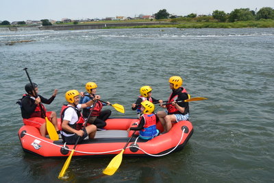 | 急遽、ラフティングボートの体験会を実施することにしました。約50名の家族の方々が体験されました。 |