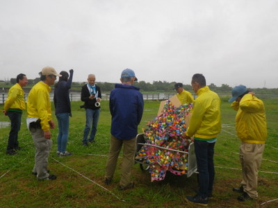 | 「エコ★カップいかだ下り」に向けて材料(発泡スチロールやペットボトルなど)を使っていかだの基本的な作り方を学びました。 | ||
