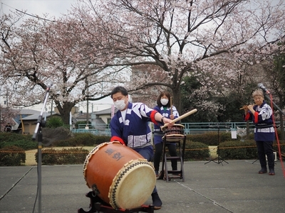 | 二ヶ領用水沿いに満開の桜の下で3年ぶりに、 恒例の『多摩川 桜のコンサート』を開催しました。 |