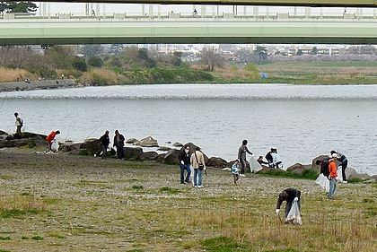 | 満開の桜の美しさに負けぬよう笑顔がいっぱい クリーンアップの成果のゴミ袋がこんなにたくさん! 達成感で笑顔がさわやか! 多摩川の小鳥達も喜んでいます。 子供さんたちもお手伝い有難う。 八千代銀行から21名のお子さんを含め102名もの方々が 参加され、クリーンアップにさわやかな汗を流しました。 地域の皆さんもたくさん参加していただき 短時間に河川敷が見違えるほど美しくなりました。 地域の皆さんも毎月の参加有難うございます。 |