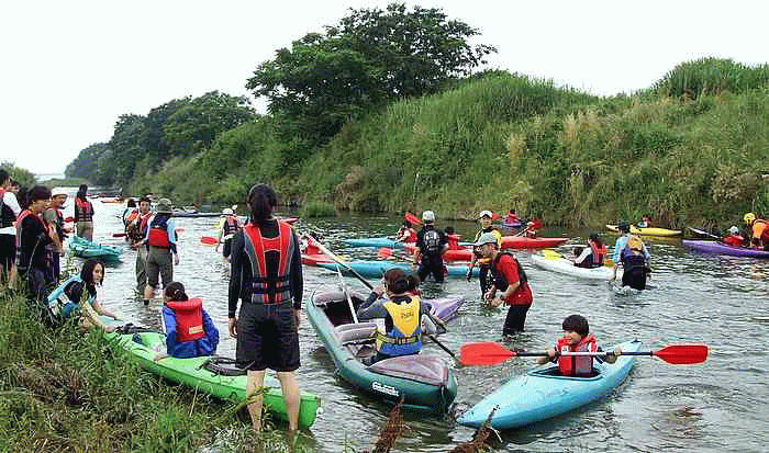 | 日時:6月8日(日)午前10時〜14時 場所:川崎市中原区とどろき緑地先多摩川本川 5月末からの不安定な空模様の連続で、実施できるか否か 関係者の皆さんにはご心配をおかけしました。 皆さんの熱意が届いたのでしょうか?当日は早朝に小雨が降ったにも 拘わらず、カヌー陽気!参加者も「待っていました!」とばかりに ライフジャケットを着込んで、開始を待ちました。 |