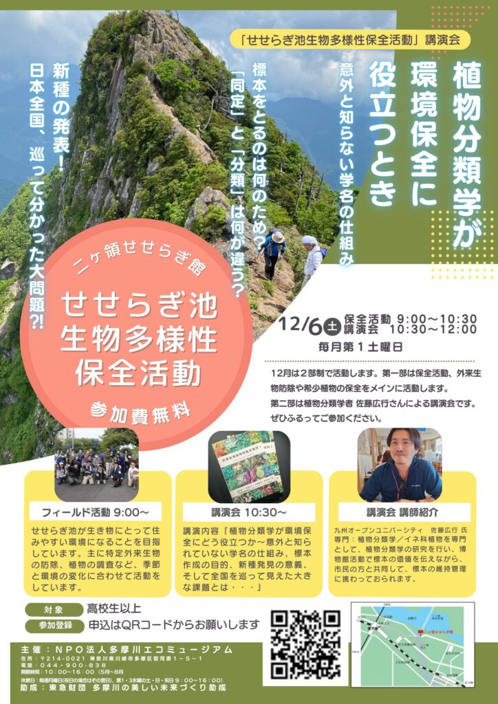 ※本二ヶ領せせらぎ館周辺の生物多様性保全活動は、東急財団 多摩川の美しい未来づくり助成により行われます。