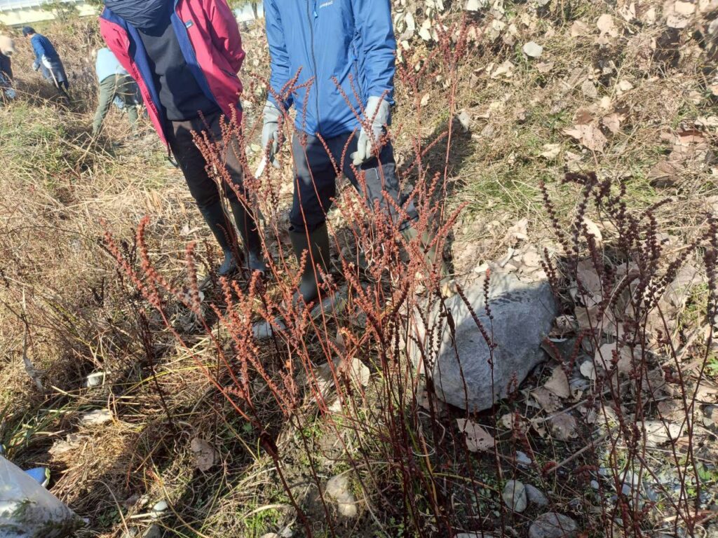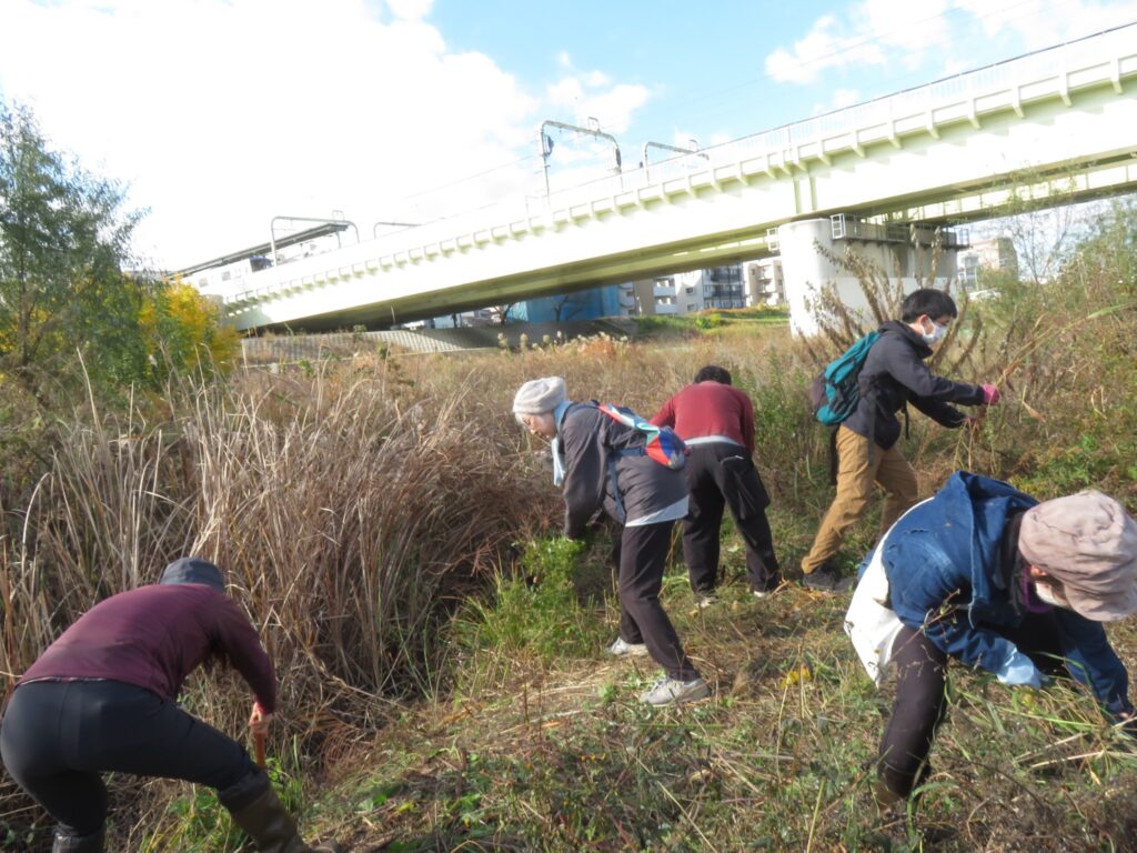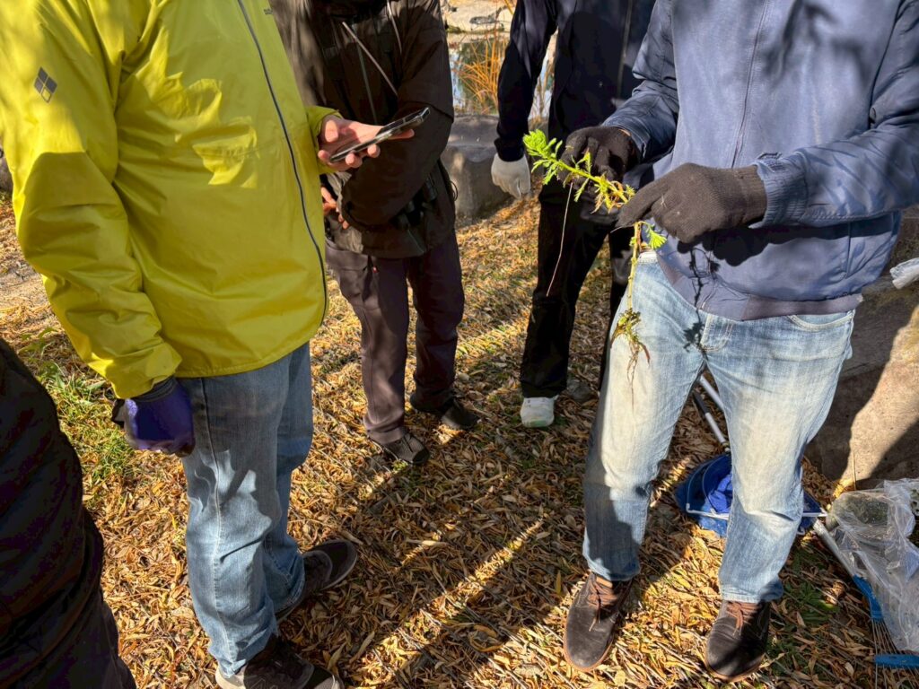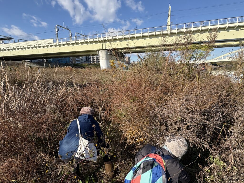 冬になってしまうと、アレチウリは枯れてしまい、あまり見つけることができませんでした。佐藤さんの植物標本作成のお手伝いををしたり、タコノアシ班を訪問したりしました。「タコノアシ以外全部抜く」プロジェクトのタコノアシ以外の植物を抜いていたエリアのタコノアシの茎が、他のエリアと比べると明らかに太く、草丈も大きく成長しており、プロジェクトの成果を感じることができました。