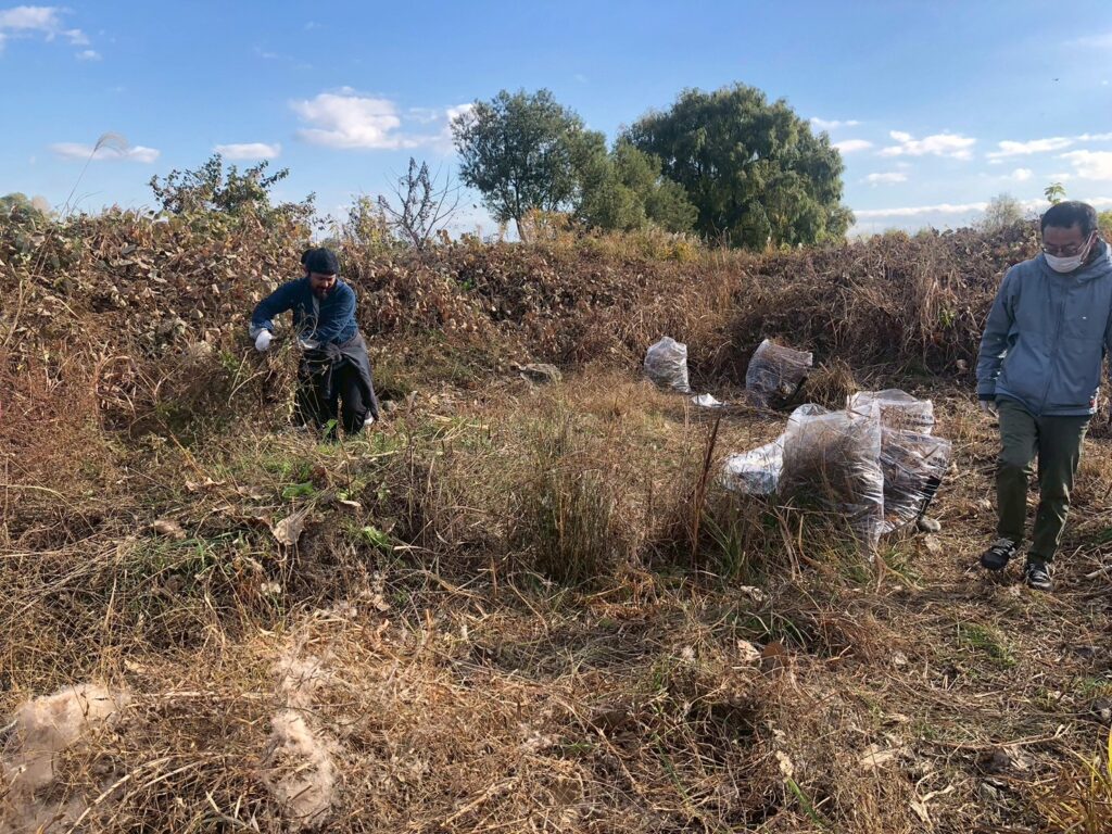 セイバンモロコシ、アレチハナガサ、センダングサ等、背が高く木質化している草が多いため、剪定ばさみや鎌等の道具を駆使して作業を行いました。土埃や植物の綿毛が舞い散り、全身をセンダングサの種にひっつかれながらの力仕事はなかなか大変でしたが、作業が終わってすっきり見通しが良くなった環境を見ることができると、達成感がありました。