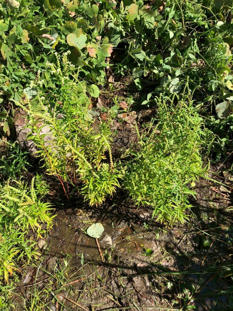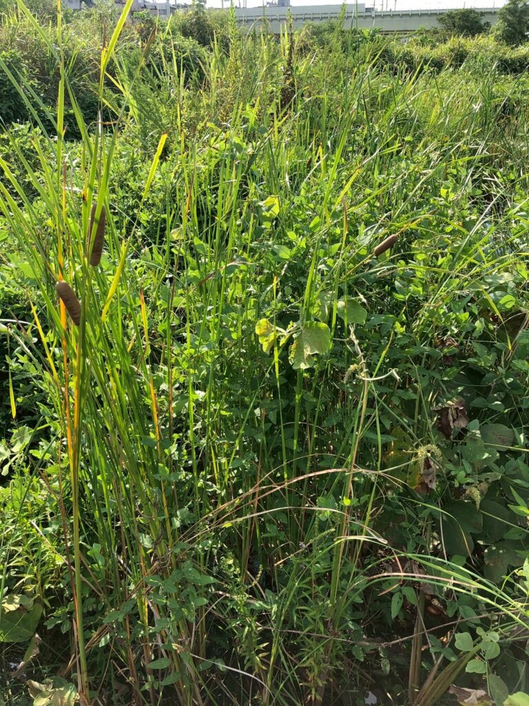 タコノアシ以外の植物もそのままにしているエリアは、タコノアシが他の植物にかなり埋もれてしまっていました。