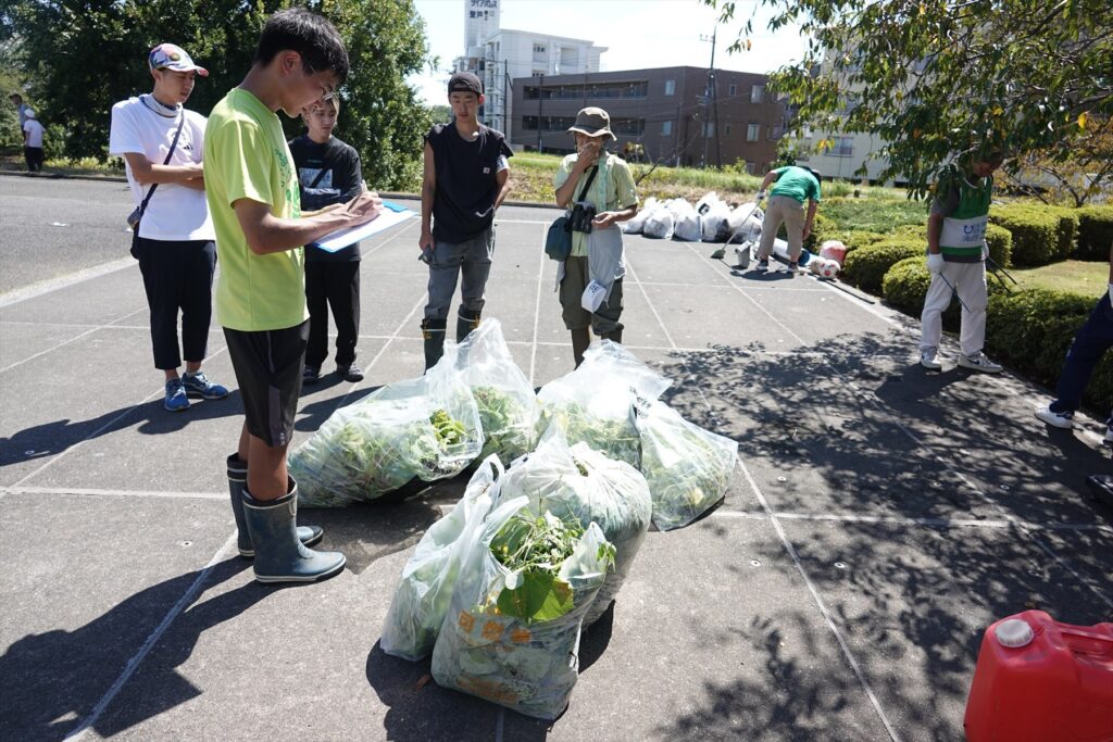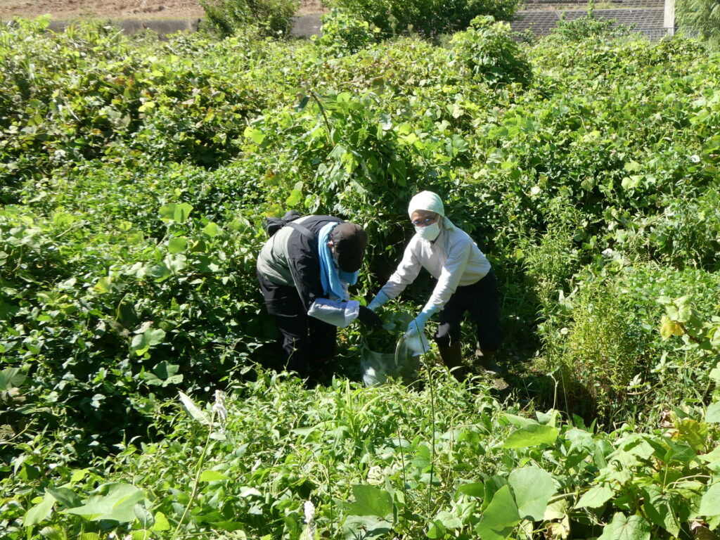 8月の活動と同様に、今回も事前に撮影を行ったドローン画像にもとづいてアレチウリの防除計画を立案した上で、当日の防除作業に臨みました。