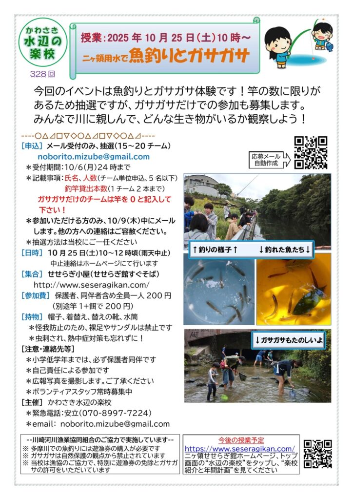 (ガサガサだけなら竿を0で応募してください) - 応募メール宛先:noborito.mizube@gmail.com
