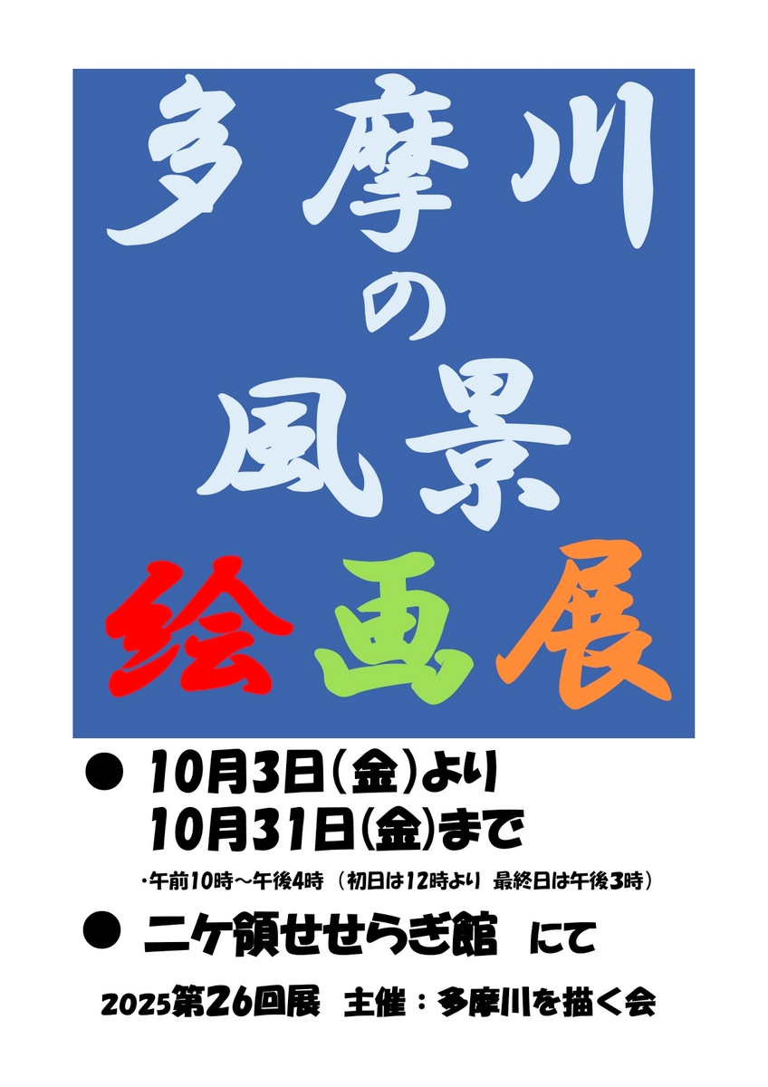 ”多摩川を描く会”の皆さんが、多摩川流域の風景を描いた絵画展です。