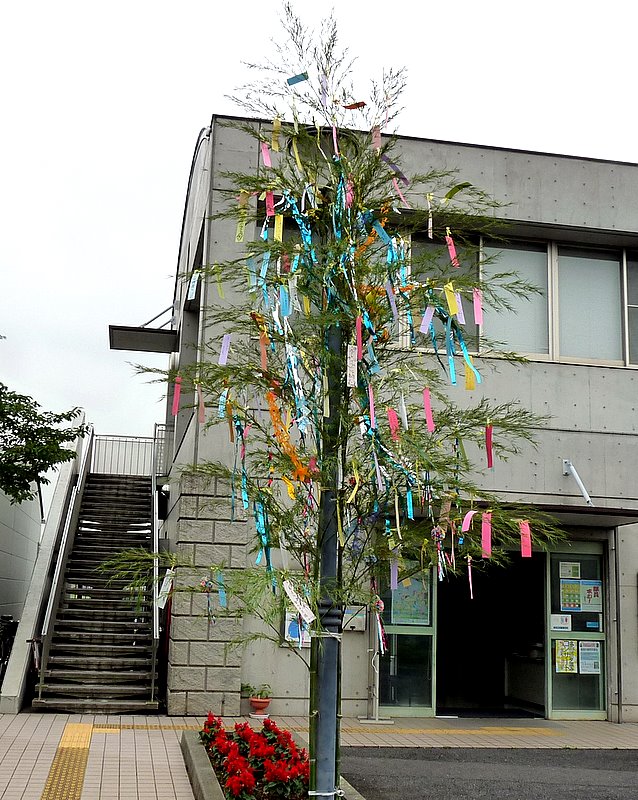 今年も7月1日から7月7日までせせらぎ館入り口の花壇に七夕飾りを立てました。