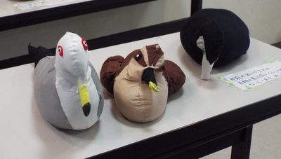 | この展示は、“東京農業大学 野鳥の会”の活動で 『多摩川に来る野鳥たち』の ・カウントデータ ・ぬいぐるみ ・模型 を展示しています。 |